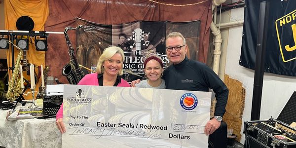 The Bootleggers Music Group presented a Check on behalf of ALL our sponsors to Easterseals/Redwood in the amount of $20,000. Pictured left to right - Sherry Ems, Olivia Jones of Easterseals/Redwood, Paul E Jones - CEO The Bootleggers Music Group LLC. Thanks to all our Sponsors and Supporters. The Bootleggers Music Group "We Got Your 6" Campaign is ongoing, so be sure to get your Shirts today!!!! Let's keep up the Support.